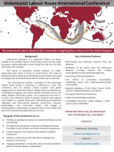 Indentured Labour Route Project Educational Platform Indenture in the World Commemorating Indenture Conferences and Events Exhibitions and Museums Related Websites News and Events Tribute - Prof Brij LalTribute to Dr (Mrs) Corinne Forest News and Events 19 Aug THE INDENTURED LABOUR ROUTE AT August 19, 2025 Read More 02 Sep Tribute Dr (Mrs) Corinne Forest September 2, 2022 Read More 08 Jun Tribute to Prof Brij Lal June 8, 2022 Read More THE INDENTURED LABOUR ROUTE AT THE CROSSROADS: IMAGINING NEW FUTURES FOR THE GLOBAL DIASPORA